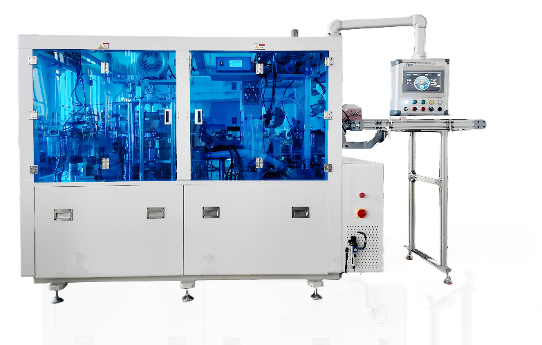 2. 集成傾斜式重力吸紙、三工位分步卷邊及純機械出杯結構,生產速度可達 110 件 / 分鐘,較傳統機型效率提升 57%。